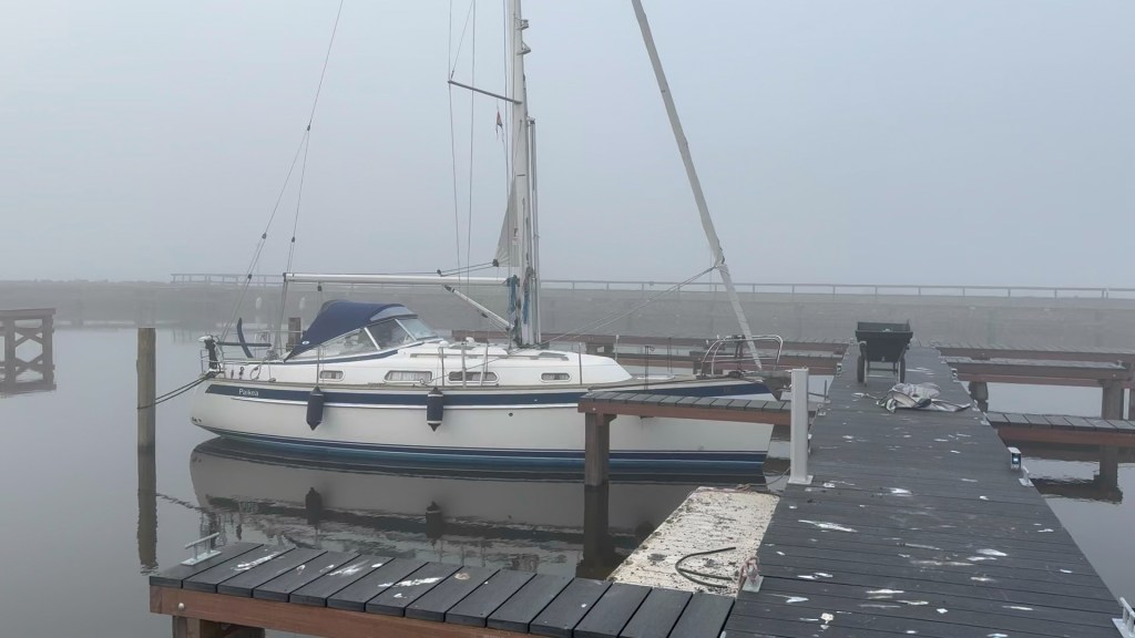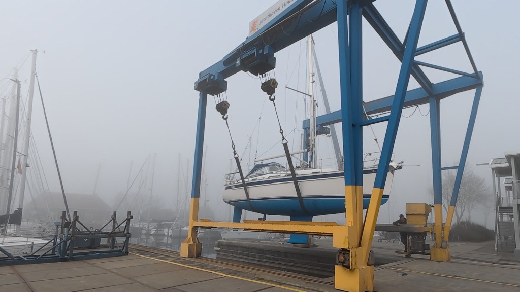 Heute war früh aufstehen angesagt. Um 13 Uhr soll Paikea zurück ins Wasser gekrant werden. Oder früher oder später, je nachdem wie die Mitarbeiter vorankommen, schrieb mir die Werft. Also klingelte der Wecker schon um 5 Uhr, denn um 5:30 wollte ich schon unterwegs sein. So früh morgens ist noch niemand auf der Autobahn unterwegs, und so komme ich zügig voran. Seit November bin ich nicht mehr bei Paikea gewesen; sie steht dort seitdem aufgebockt auf dem Parkplatz. Öfters habe ich mich gefragt, ob sie den Winter gut überstanden hat oder sie Schaden genommen hat. Von aussen können ja Wind und Wetter einiges anrichten und von innen hat man schon of von Boten gehört, bei denen die kondensierende Feuchtigkeit jede Menge Schimmel gedeihen ließ. Kurz vor der Ankunft weicht der Sommenschein Nebel, der auch immer dichter wird. Schon gegen 10 Uhr passiere ich die Schranken der Marina. Zuallererst schaue ich nach Paikea. Zumindest von aussen sieht alles in Ordnung aus. Danach geht es zur Rezeption. Es bleibt bei 13 und ich muss noch etwas Geduld haben. Ich mache eine Runde durch die Marina und besuche meinen Liegeplatz. Dort wurde der Steg erneuert und zwei Mitarbeiter montieren gerade die Wasserhähne und verlegen die letzten Stromleitungen. Im Supermarkt kaufe ich ein paar Vorräte: Kaffee, Milch, Erbsensuppe, Brötchen – denn ich möchte zwei Tage hier bleiben, um das Boot schon mal ein wenig auf die Saison vorzubereiten. Darauf freue ich mich!
